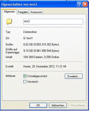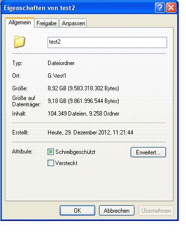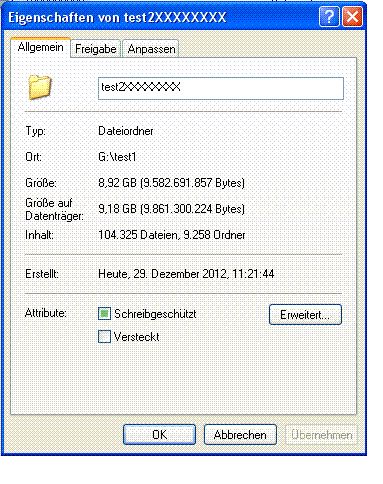 In den letzten Tagen habe ich mich mit der Sicherung meiner Daten auf der neuen HD(NTFS) unter Win XP beschäftigt. Die Verzeichnistiefe wirrt mit aussagekräftigen Dateinamen in großer Anzahl immer größer. In Bild1 habe die Anzahl der Dateien überprüft. Vergrößere ich die Verzeichnistiefe mit hinzufügen von XXXXXXX so wirrt die Dateienzahl geringer Bild2. Lösche ich die XXXXXXXXX wider so ist die ursprüngliche Dateienanzahl wider vorhanden Bild3. Ab welcher Verzeichnistiefe gehen Dateien verloren oder werden in *.zip nicht Archiviert? Ich verwende auch FreeFileSync um Verzeichnisse zu wergleichen. Werden alle Dateien mit berücksichtigt? Gruß Jens