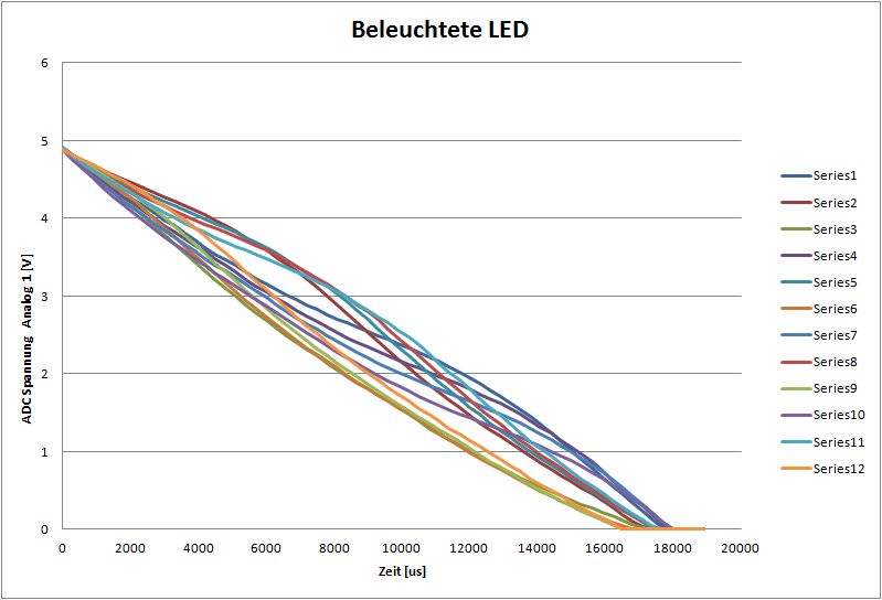 Mein Programm lädt die LED in Sperreichtung auf und misst dann