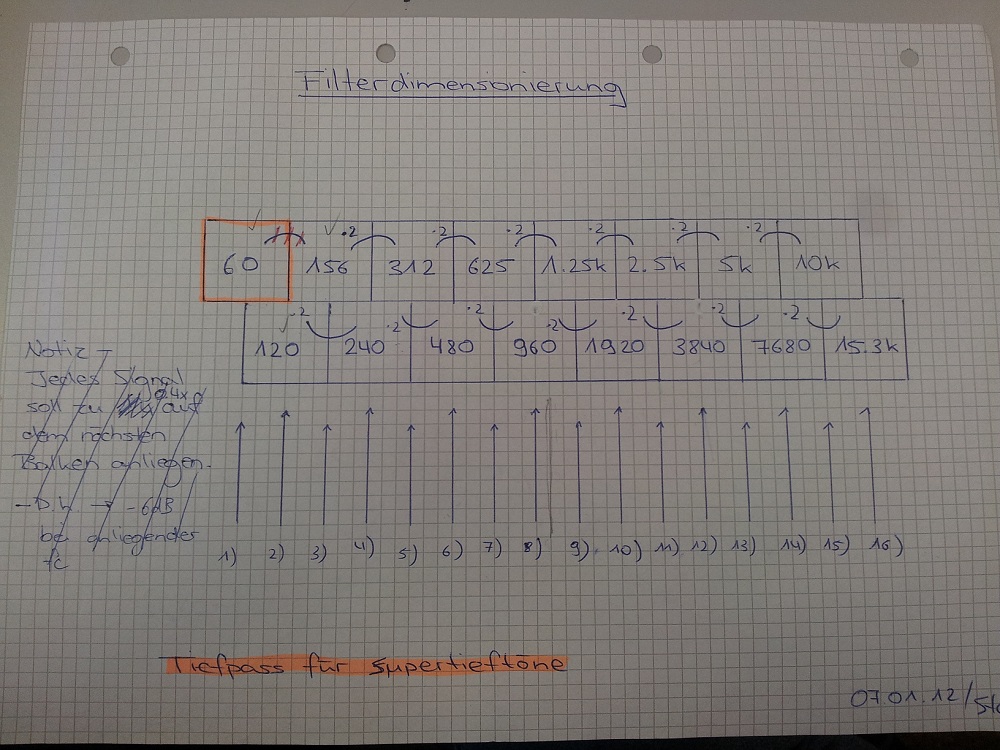 Hallo miteinander! Als kleines Heimprojekt beschäftige ich mich momentan mit dem Bau eines 16-Kanal LED Audio Spektrumsanalysators. Die Filterung der 16 Frequenzbänder geschieht mittels einer Reihe aktiver Bandpassfilter, die Signalauswertung soll über einen ATmega32 laufen. Die Mittenfrequenzen für die 16 Kanäle habe ich gemäss dem angehängten Bild exponentiell steigend in zwei Schienen gewählt. Die orange markierten 60Hz werden als erste Frequenz mit einem Tiefpass gefiltert. Ab dann setzt die Frequenzverdopplung ein. Nun zu meiner Frage: Welche Filterbandbreite, bzw. welcher Q-Faktor pro Filter führt zu einer schönstmöglichen Anzeige? Einerseits will ich so genau sein dass ich tatsächlich erkennen kann, welche Frequenz überwiegt, andererseits sollen mir auch keine Frequenzen rausfallen, nur weil sie nicht genau auf einer Mittenfrequenz liegen. Hat sich hier schon einmal jemand mit beschäftigt und hat vielleicht Erfahrungswerte? Vielen Dank für die Antworten, Ruben
