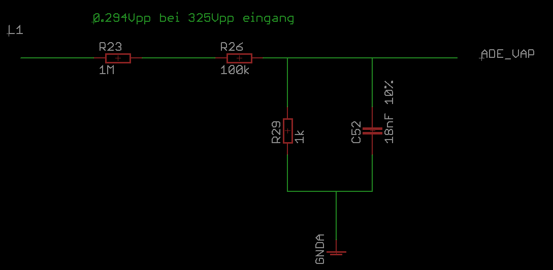 Da GNDA nicht netzgetrennt ist, müssen es keine 2.5kV sein aber 325V sind 1:10 schlecht aufgeteilt, die 300V für R23 sind zu viel. Ausserdem sollte man 200V Widerstände nicht dauernd an 200V haben, das wäre für die Lebensdauer besser. Gerade Messwiderstände sind blöd wenn sich ihr Wert im Laufe der Zeit verändert. Ich weiß, EIGENTLICH sollte ein 200V Widerstand 200V dauernd aushalten, aber die Praxis sagt anderes.