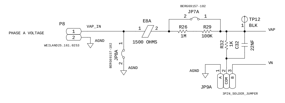 Alex schrieb: > Ich schätze mal, dass "Phase A Voltage" KEINE 230V sind - Widerstände > können auch gebrüggt werden! Das dachte ich mir auch, aber die Application Note UG-146 (http://www.analog.com/static/imported-files/user_guides/UG-146.pdf) Seite 4: The voltage input connections on the ADE7878 evaluation board can be directly connected to the line voltage sources. Das machen die wirklich so :-) Nur ich würde es gerne schon verstehen :-)