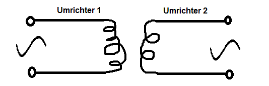Hey Leute, angenommen ich habe zwei baugleiche umrichter...die beiden Ausgänge (spannung sinusförmig) sind per trafo (ideal, übersetzungsverhältnis = 2:1, Wirkungsgrad =1) miteinander verbunden.... angenommen ich habe umrichter 1 ausgeschaltet: dann liegt an umrichter 1 doch trotzdem die hälfte der spannung an, oder? was ist nun wenn ich den einschalte...liegt dann die spannung des umrichters an oder die 1,5fache? lg sarah