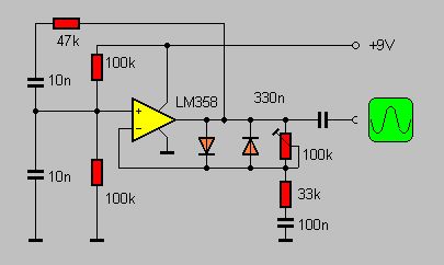 @wilhelms "Ausserdem passt man nicht eine Schaltung den Bauelementen an, die man gerade da hat, sondern man besorgt genau die Bauelemente, die man für eine bestimmte Schaltung benötigt." Im Hobbybereich sind beide Vorgehensweisen legitim. Aber dann muss man sich manchmal genau die Schaltung besorgen die zu den Bauelementen passt :) Hier fehlen aber ein paar entscheidende Bauelemente für eine Wienbrücke, allem voran eben das Doppelpoti (und zwar ein lineares, mit einem irgendwo rausgerupften Lautstärkepoti kann es da eine böse Überraschung geben...). Und es wird seinen Grund haben warum die meisten Schaltungsvorschläge entweder einen JFET oder eine Kleinstglühlampe involvieren obwohl die Begrenzerdioden weit billiger wären :)