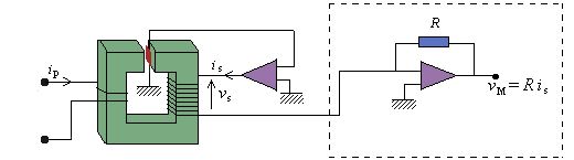 das ist eine strommessung nach dem kompensationsverfahren. der fluss im kern wird auf 0 ausgeregelt => is=ip*Np/Ns damit ist das ganze linearer (kern fliegt raus) einfach googeln... hat einige vorteile 73