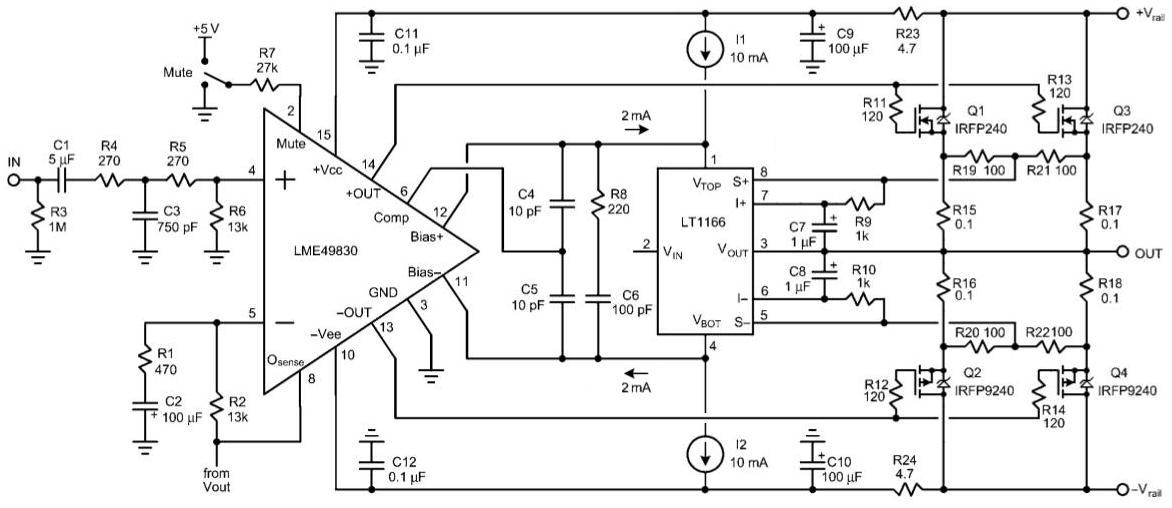 Alles klar, ich werde aus dem Fehler lernen und in Zukunft zwei Kanäle vom Oszi benutzen. Das heißt ja nun dass ich eigentlich nichts anderes gemacht hab als den Ausgang vom Amp kurzzuschließen, oder? Verwunderlich dass es dabei den LME zerhaut… Entweder ist der Steuerstrom für die Fets zu hoch geworden (unwahrscheinlich da der LME Chip kurzschlussfest ist) oder der LT1166 hat versucht den BIAS nachzuregeln und das hat den LME zerstört...