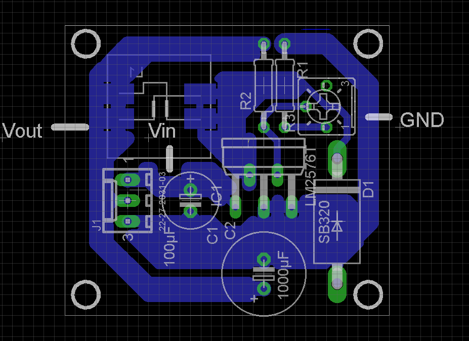 Die Spule wird dann als einziges Bauteil auf der Rückseite angelötet? Finde ich ungeschickt. Außerdem hast du es geschafft, fast alle wichtigen Strompfade des Stepdown schlecht zu verlegen. Zur Anregung: http://www.lothar-miller.de/s9y/categories/40-Layout-Schaltregler