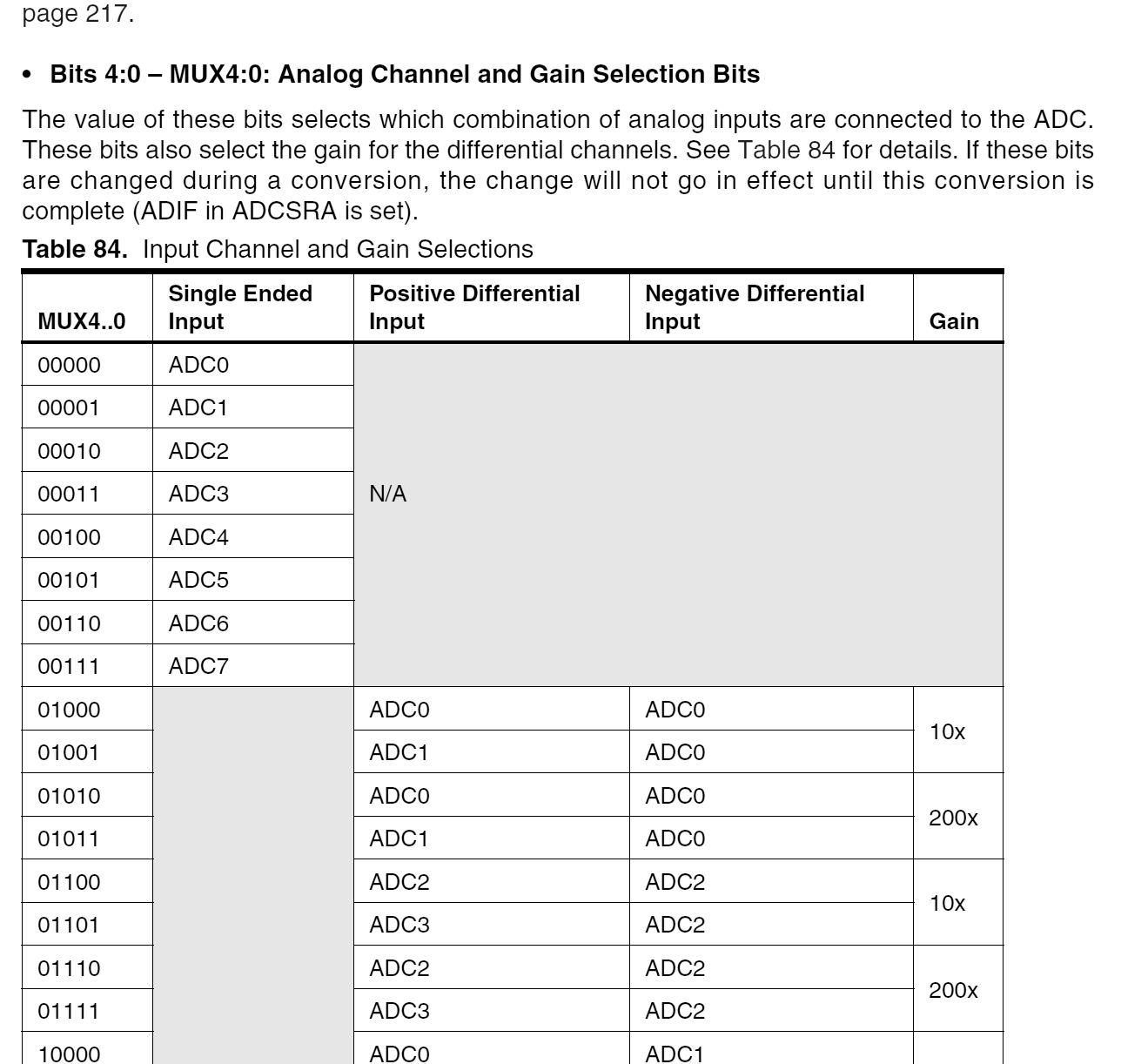 Guten Abend, nicht nur weil es höflich ist -sondern auch weil es stimmt- möchte ich ersteinmal erwähnen das mir dieses Forum schon bei einer ganzen Menge von Fragen hilfe geleistet hat. (Bis jetzt musste ich mich noch nichteinmal anmelden um Details zu erfahren.) Ich bin nur so etwas wie Programmierer und digitale Elektronik ist mehr ein Hobby von mir; leider kam dieses Fach in meiner Ausbildung etwas zu kurz und gleichwohl ist mein Wissen auf diesem Gebiet es auch. Lange Rede, kurzer Sinn: ich würde nicht schreiben wenn es nicht auch eine Frage gäbe. Ich versuche seit geraumer Zeit die ADCs eines Atmega32 im Differential Gain (x200) Modus zu betreiben. Bis vor kurzen glaubte ich auch ungefähr verstanden zu haben wie dieser Modus funktioniert. (Allerdings anhand verschiedener Schaltungen mit OPVs) Steckt aber hinter diesem Modus nicht der selbe Gedanke / theoretische Aufbau? Also die Differenz der Spannungen zweier Eingänge, Verstärkung ebendieser und Wandlung? Im Datenblatt zum Atmega32 (2503Q–AVR–02/11) S.215 befindet sich eine Tabelle mit den Werten die in ADMUX stehen müssen, so das die verschiedenen Eingänge gewählt werden. Wenn ich aber eine Differenz messen will, und nun zur eigentlichen Frage, wieso solle dann (ADMUX4..00 := 0b010101) beide Eingänge an ADC0 (PA0)? Wie wird da eine Differenz gemessen? Eine Aufklärung bzw. Hinweise zur Beseitigung meines Denkfehlers kämen mir mehr als gelegen. MfG. Stork