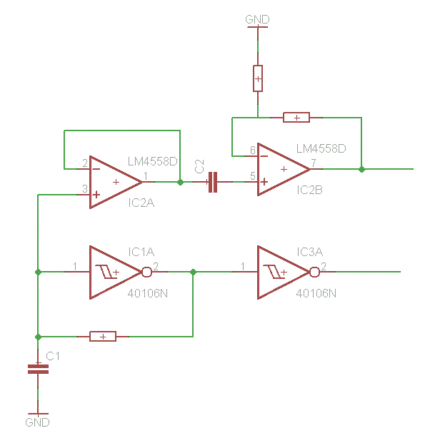 IC2A ist unnötig und IC2B braucht am nichtinvertierenden Eingang eine Biasversorgung.