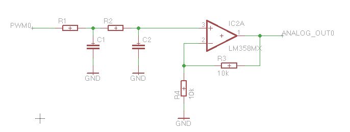 Hallo, brauche für eine Platine mit einem mega64 mehrere pwm Ausgänge. Ich will eine Spannung zwischen 0 und 10V einstellen können. Habe mir die angehängte Schaltung überlegt. Nun kommt die Frage HardwarePWM oder SoftwarePWM. Ich brauche definitiv einen 10bit Timer für andere Zwecke. Habe mich noch nicht wirklich viel mit PWM beschäftigt. Welche Pins würde ich mit HW-PWM benutzen? Was für eine Schaltfrequenz muß ich anlegen, um mit der dargestellten Schaltung eine gute Stabilisierung zu erreichen? Mit welchen RC-Werten? Danke Schorsch