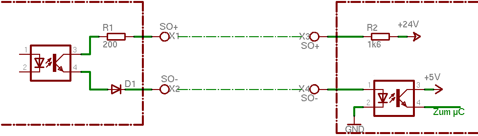 Wenn ich mir das Bild so ansehe. Darf der Widerstand R2 auch vor den Eingangs Optokoppler (also zwischen X4 und Anode)?