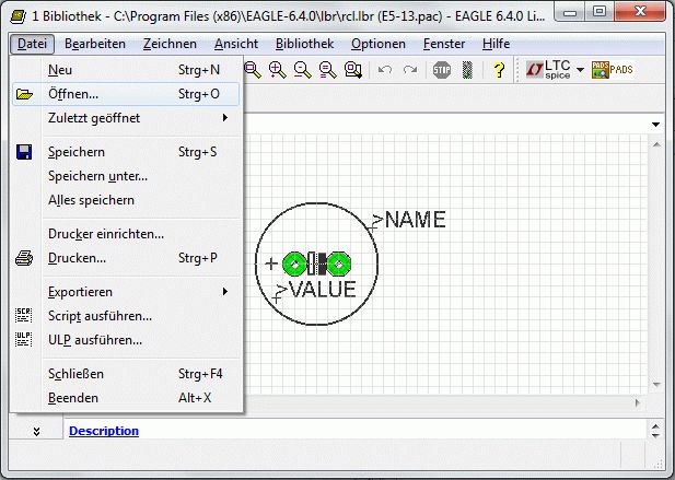 Hallo, ich habe eine kurze Frage zu Eagle. Ich suchte gerade eine Spule in 0805 und habe sie nicht gefunden. Also wollte ich das vorhandene Symbol der Spule (rcl.lbr) mit einem vorhanden Layout von einem Widerstand verknüpfen. Soweit kein Problem. Wenn ich habe auf das Symbol mit der rechten Maustaste klicke, kopiert er mir alle zugehörigen Layouts der Spule mit in meine neue Bibliothek. Löschen geht wieder nur in dem ich den Dateinamen eingebe, was bei der Menge so lange dauert, das ich es auch komplett selbst zeichnen könnte. Frage: Wie übernehme ich nur das Symbol oder nur ein bestimmtes Layout in meine eigene Bibliothek. (Oder wie kann ich die Dinger wieder schnell rauslöschen). Danke
