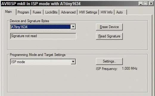 Der ATTINY 1634 lässt sich im AVR-Studio 4.19 doch ganz normal auswählen. Aus den Release Notes: The following new parts have been added to AVR Studio since 4.18 SP3: ATtiny84A, ATtiny1634, ATmega3250PA, ATmega325PA, ATmega3290PA, ATXMEGA16A4U, ATXMEGA32A4U, ATXMEGA64A3U, ATXMEGA128A3U, ATXMEGA192A3U, ATXMEGA256A3U, ATXMEGA256A3BU