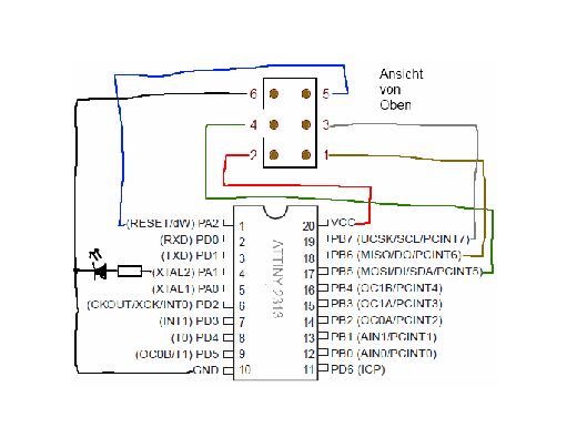>> Mach mal einen Abblockkondensator an den Tiny. >Mit welchem Wert und an welche Pins des Attiny2313? 100nF keramischer Kondensator oder zur Not auch Folie. Darf auch 47nF sein. Kommen da überhaupt 5V aus dem Programmer? Ohne Spannung kannst du den Tiny nicht programmieren.