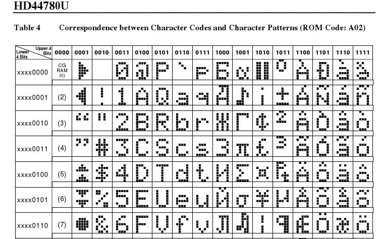Den HD44780 gibt es mit verschiedenen Zeichensätzen. Der Übliche ist ROM