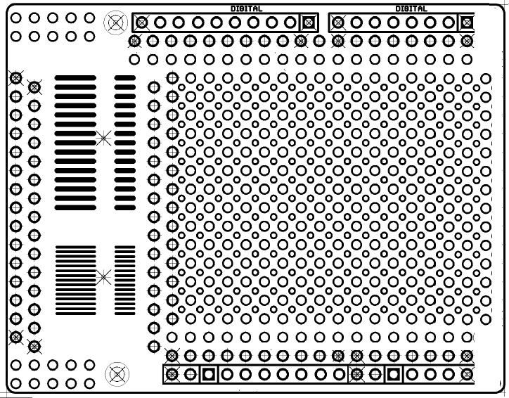 Ich haben eine Anfrage gemacht bezüglich einer Platine änlich der oben geposteten. Diese geht als Lochraster sowie auch für Arduino, hat USB Anschluss für einfache 5V, Micromatch sowie im Notfall RJ Stecker können verwendet werden, so-8 sowie sot23-6 und subd-Stecker. Auch hat sie größere Bohrlöcher für die Steckklemmen auf 3 Seiten. Da niemenad interesse hatte, wurde sie noch spezieller, bzw kamen noch einige Footprints drauf, und der subd-25 verschwand. Diese Platine ist ca 53x70, geringfügig großer wegen des Arduino formates. Kein Bestückungsdruck Wenn diese Anfrage aber positiv verläuft, dann ist aber klar, daß ich meine derzeit 15 gelisteten 5x7cm Platinen zurückziehe, da ich mit den personalisierten Platinen mehr davon habe. Eine weiteren Vorschlag: Was haltet ihr von sowas wie im Anhang, mit 2x PLCC Footprint auf TOP und so ein so-xx Footprint auf BOT.