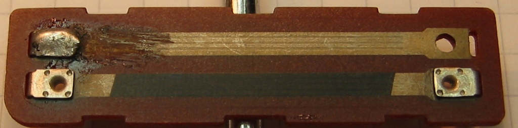 Hab ich schon probiert. Der Besitzer der Dunstabzugshaube hat versucht das Poti im inneren Nachzulöten somit sind die Schleifoberflächen hinüber. Siehe Bild.