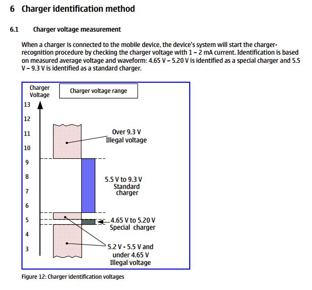 Ich kann aus dem Diagramm nur ablesen, welche Spannungen/Ströme nicht zulässig sind. Das sagt aber noch nicht aus, welche Spannung korrekt ist. Wenn das Netzteil 2 Volt liefert, kann der Akku damit wohl kaum geladen werden. Ich lese das Diagramm eher so, dass die Ladespannung mindestens 5,4 Volt sein muss. Demnach kann das Handy nicht am USB Port des Computer geladen werden. Ist das wirklich so? Würde mich wundern.