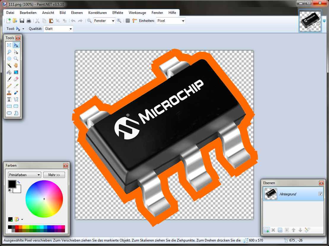 Timmo H. schrieb: > Dafür muss man nur die Toleranz für den Zauberstabs etwas größer > einstellen. > Viel ist davon von dem Ausgangsbild in Jpeg zu verdanken, da durch die > Kompression Artefakte entstehen (insbesondere an den Kanten) und damit > den Farbton leicht verändern. genau! und wenn man sich mühe gibt könnte man diese Pixel auch noch mit dem Lasso ausschneiden.... Wobei, wenn die Jpg-Quelle schon zu sehr verauscht ist oder wenn der Hintergrund zweifarbig ist, zeichne ich die Kanten gerne auch mal mit dem Linienwerkzeug nach. Dann hat man um das Objekt herum zmindest einen einheitlichen Farbton. ...muss jetzt nicht unbedingt Orange sein, besser wäre wohl weiß, aber so sieht man zumindest was ich meine ;-)