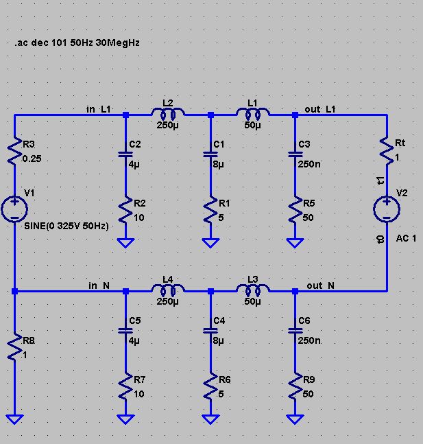 > Z=0,25Ohm + j0,15Ohm Dies dürfte nur für 50 Hz gelten. > Netznachbildung nach CISPR16. Danach sieht der Verbraucher, > bei Frequenzen größer 9kHz, eher 2 * [50 Ohm // (5 Ohm + 50 µH)]. Für HF ist das Netz hochohmiger. Das verdrillte Stromkabel dürfte einen Wellenwiderstand haben, der nicht weit weg von den 50 Ohm liegt.