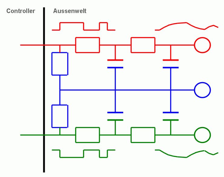 Ich möchte einen balancierten symmetrischen Messeingang antreiben, der Plus, Minus und GND hat. Die symmetrische Übertragung ist nötig, weil das Umfeld verseucht und die Leitung lang ist. Mit einer PWM erzeuge ich bereits Signale, die mit dem Tiefpass geglättet werden. Frage: Kann ich so vorgehen? Wie erzeuge ich die Masse? Im Microcontroller kann ich ja keinen Mittelwert erzeugen. Geht das so über den Spannungsteiler?