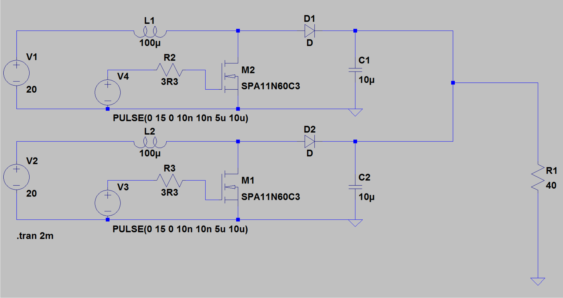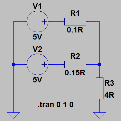 @Peter Simuliere mal die obige superprimitive Schaltung. Zwei exakt gleiche Spannungsquellen mit außen liegendem "Innenwiderstand", an einer Last. Zu deinem Problem erkennst Du dabei folgendes: 1. Um auf einen gleichen Strom zu kommen musst Du den Strom jeder Quelle regeln. 2. Um jeden Strom zu regeln muss Quelle 1 "wissen" welchen Strom Quelle 2 gerade liefert und umgekehrt. Damit geht die Unabhängigkeit verloren. Vor allem wenn sich der Strom wegen seiner Variabilität nicht festlegen lässt.
