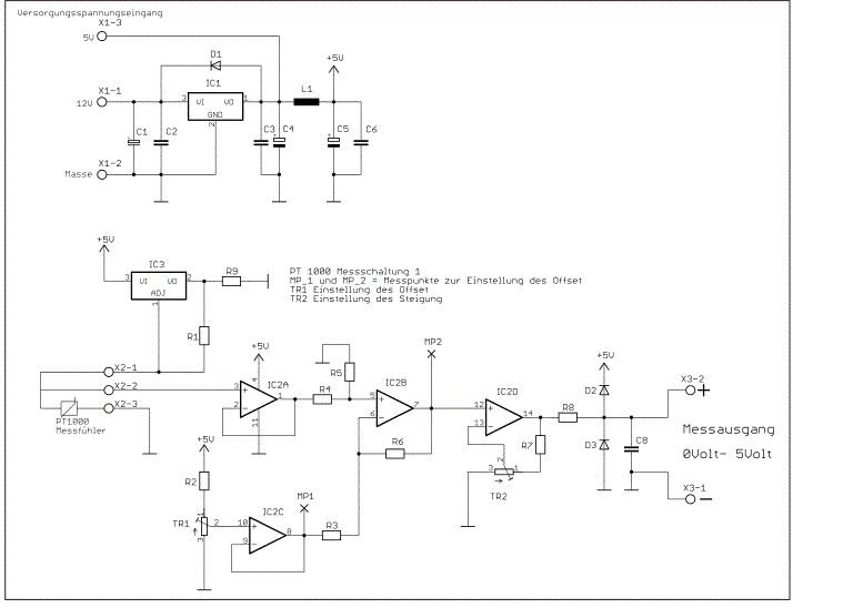 Hallo zusammen, ich habe mir den Bausatz von Pollin für die Auswertung eines PT 1000 gekauft. Grundsätzlich funktioniert die Schaltung auch, aber in meinem benötigten Messbereich 0 - 100° C ist die Auflösung zu gering. Gibt es evtl die Möglichkeit mit einfachen Änderungen die Schaltung besser an diesen Bereich anzupassen? Angehängt sind der Schlatplan und die Stückliste. Vielen Dank schonmal für Tips! Gruß