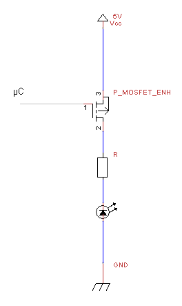 Die LED ist falsch herum eingezeichnet, der Schaltplan funktioniert nicht. Kann man bei solch kleinen Teilen eigentlich die Gatekapazität vernachlässigen?
