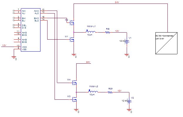 Hallo Zusammen Ich bin gerade dabei eine H-Brücke (Vollbrücke, 4 Tranistoren) mit 12V-Speisung durch eine Halbbrücke (2 Tranistoren) zu ersetzen. Hiebrei soll dann mit 24V gespiesen werden und ein Anschluss der Last (z.B.: Motor) direkt auf 12V fix hängen. Somit erspare ich mir einige Komponenten da die Stufe einige zig-mal vorkommt, habe aber trotzdem für die Last meine +/-12V zur Verfügung. Nun ist meine Frage: Die 12V-Speisung müsste, da Sie ja in der Mitte der Halbbrücke liegt, sowohl sourcen als auch sinken können. Normale DCDC-Konverter sourcen ja ausschliesslich. Gibt es hier spezielle Typen die man einsetzen kann und auch bezahlbar sind? Eventuell konkrete Vorschläge (Grössenordnung 2A)? Irgendjemand schon Versuche/Erfahrungen mit einem ähnlichen Anliegen gemacht? Danke und Gruss Patrick