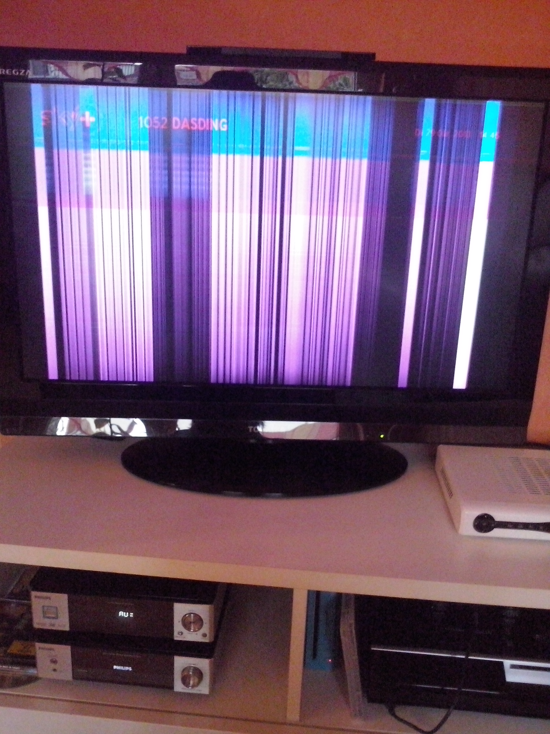Hallo vielleicht kann mir ja jemand helfen, seit einiger Zeit hat mein Toshiba über die gesamte Fläche des Bildschirms in regelmäßigen Abständen horizontale grüne ( sehr helles grün ) Steifen, weis jemand was das ist und ob es sich lohnt,da noch einen Fernsehmechaniker kommen zu lassen. Über eine rasche Antwort würde ich mich sehr freuen. Liebe Grüsse Monika P.S. das Gerät ist ca fünf Jahre alt.