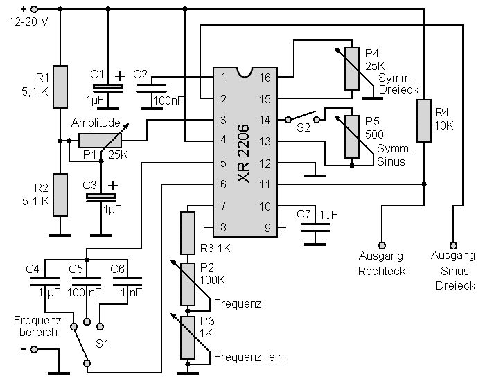 Hallo, ich habe mir eine Schaltung zum XR2206 als Funktionsgenerator gebaut. Es funktioniert auch schon nicht schlecht, also Rechteck und Dreieck sehen ganz gut aus. Mein 1. Problem im Moment ist, dass ich beim Dreieck und beim Sinus eine Verschiebung nach unten habe. Ich habs am Oszi einmal auf DC und einmal auf AC gemessen, bei AC wars ok. Also hab ich wohl irgendwie einen negativen DC Anteil. Weiß jemand ob das normal ist oder ob ich noch eine zusätzliche Beschaltung brauche bzw. an was das liegt? 2. Problem ist die Sägezahnspannung, ich habe wie im Datenblatt Pin 9 und 11 verbunden, erhalte aber leider kein Sägezahn... Kennt sich da jemand aus? Gruß Michael