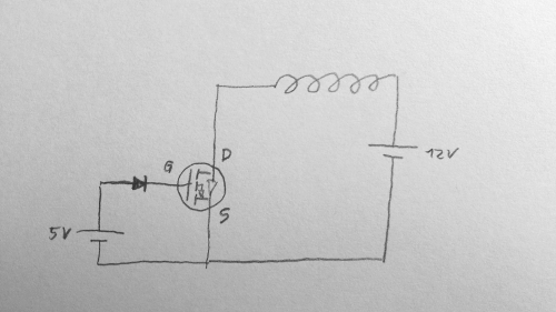 Außer dem falschen FET solltest Du - die Diode vor dem Gate weglassen - zwischen Gate und Source einen Widerstand einbauen (~100k) - eine Freilaufdiode parallel zur Spule spendieren (sonst ist der FET nach dem ersten Abschalten kaputt). Gruß Dietrich Edit: also das, was Hubert und Falk mit dem Link sagen wollten...