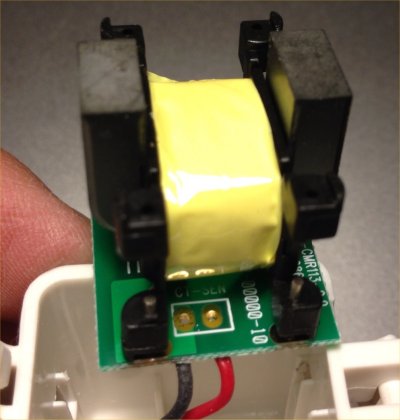 Ferritkern. In Reihe geschaltet ist noch ein Widerstand.