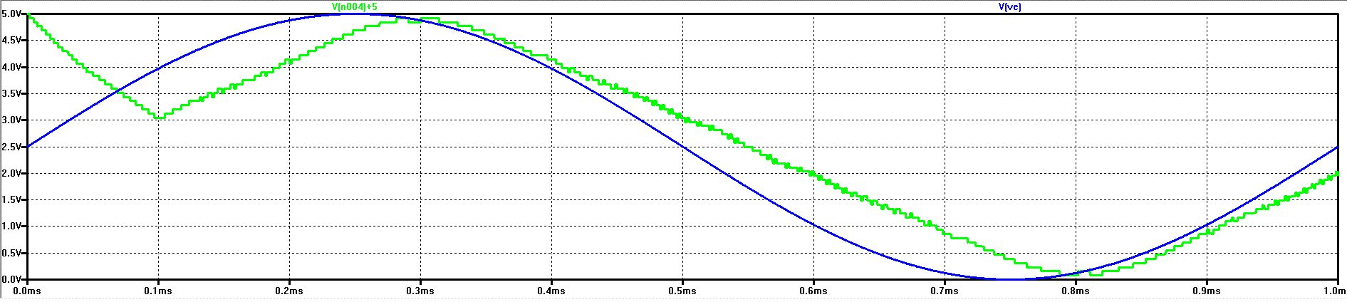 Hallo, ich benutze in LTSpice ein D-flipflop. Dieses gibt mir jeden Takt eine Ausgangsspannung (0V oder 5V) aus. Ein möglicher Verlauf ist im Anhang. Ich würde mir nun gerne zu jedem Zeitpunkt den arithmetischen Mittelwert über die letzten N Takte anzeigen lassen. Alternativ könnte ich mir auch den arithmetischen Mittelwert über die letzten X Sekunden anzeigen lassen. Jemand eine Idee, wie man das in LTSpice realisierten könnte? Ob über Bauteile, Formel etc. ist mir egal. Würde mich über eine Antwort freuen. Aufgrund des diskreten Systems würde ich sehr gerne auf einen analogen Tiefpass verzichten. Somit fallen wahrscheinlich auch alle Laplace-Gleichungen raus, die man eventuell hätte benutzten können.