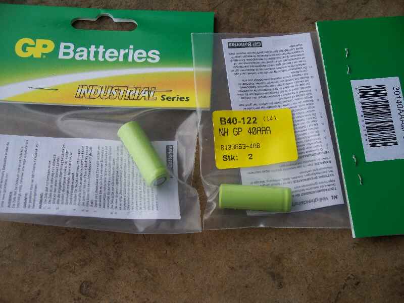 Und...Voilá, die Lady-Zelle von Reichelt ist da! NH GP 40AAA :: NiMh-Industriezelle von GP, 400mAh 1,45 Euro, billiger als alle Batterien. http://www.reichelt.de/index.html?ACTION=3;ARTICLE=56018;SEARCH=NH%20GP%2040AAA Bei Reichelt findet man unter diesem Namen keine Zelle, sondern nur unter 2/2 AAA. Gemessen 10,2 mm Durchmesser und 29mm Länge. mfG