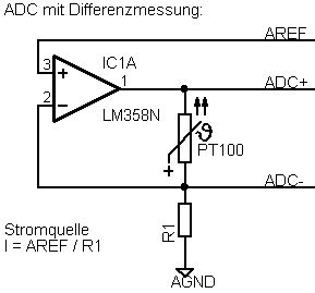 Pass auf das dir die Stromquelle nicht die Genauigkeit der Messung versaut. Jede Ungenauigkeit der Stromquelle geht voll in die Messung mit ein. Was allerdings sinnvoll sein kann: Eine per OPV realisierte Stromquelle, die den Strom via Präzisionswiderstand aus der für den ADC verwendeten Referenzspannung ableitet. Da damit die Stromquelle die gleiche Abweichung aufweist wie die ADC-Referenz, heben sich beide gegenseitig auf und es ist sogar eine recht ungenaue Controller-interne Referenz ohne Kalibrierung einsetzbar.