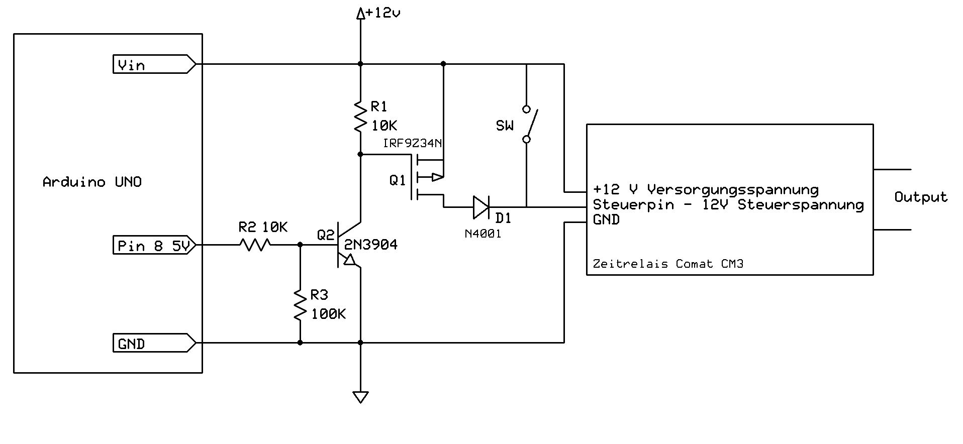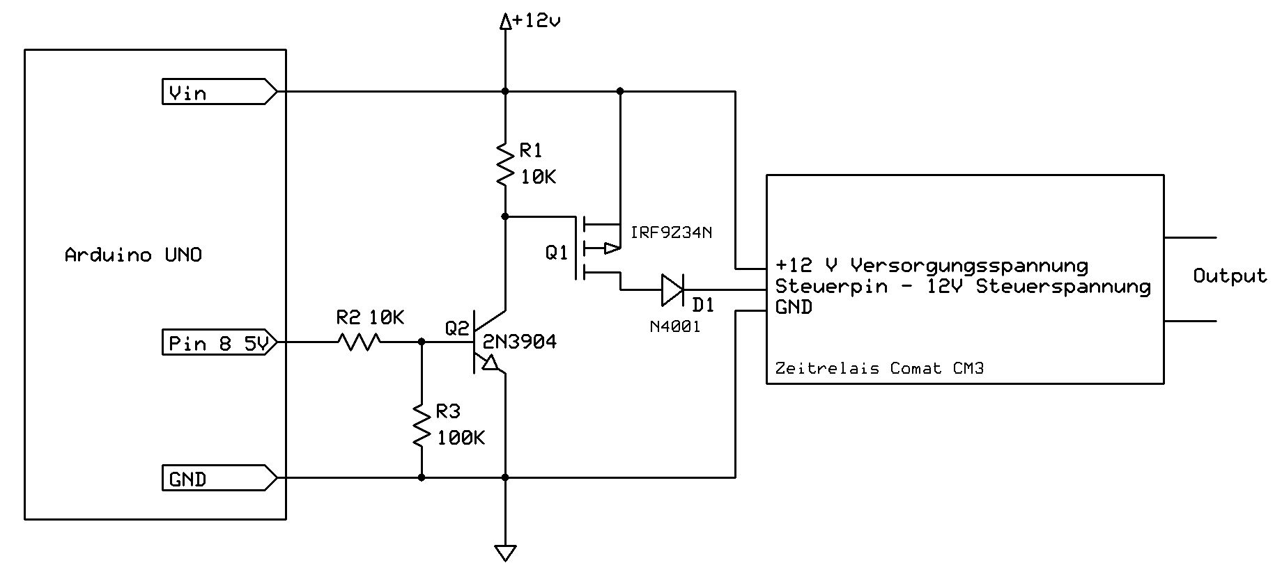 Hey Maik! Ok, zurück zum Start. Ich geh dem nach: Beim P-Mosfet: Source --> auf +12V Drain --> Steuerpin Zeitrelais ??? Lg, Lukas