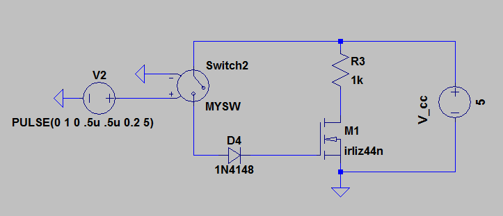 HI, Wo soll denn da ein strom fließen wenn du hinter der Diode einen Widerstand machst aber deinen uc ausschaltest und der schalter geöffnet ist? Abgesehen davon wirst du den Stromfluss bei 1Mohm o.ä. schon noch verkraften ;) (Er fließt ja nur wenn du den FET eh einschaltest). Gruß P.s. Wenn ich das gerade richtig im Kopf habe MUSS zumindest theoretisch sowieso ein Widerstand nach Masse zwischen Gate und der Diode weil ein Leckstrom aus dem FET sonst nicht abfließen könnte und dein Gate auflädt. Aber da bin ich kein Expterte. In der Realität geht es vllt. auch trotzdem ohne R.