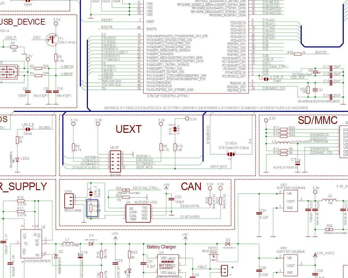 Hallo, ich habe ein STM32 Board, und steuer damit ein EPOS Regler (maxonmotor) an. Gerne würde ich von UART auf CAN umsteigen, da CAN schneller sein soll. (Mit UART komm ich nicht über 200Hz) Hierzu hätte ich zwei CAN Anfängerfragen - Die CAN RX und TX Pins habe ich an meinem Board als solche nicht "vorbereitet". Die werden bislang als Modellbau Servo Pins genutzt (Timerausgänge). Müssen hier typischerweise noch Kondensatoren oder Widerstände eingebaut werden? Oder funktioniert das direkt ab STM32? - Brauche ich hier noch eine Art Adapter (wie von UART auf RS232, MAX3232 oder ähnliches). Die CAN Schnittstelle EPOS ist im Anhang beschreiben. Wenn ja, wo würde ich diese 120 Ohm (?) Widerstände (?) finden? Das könnte man ja in die Kabel einbauen, oder? - Im EPOS Communication Guide ist irrsinnig viel technisches zu CAN beschrieben. Ist der Aufwand vergleichbar mit UART oder ist was für Profis? (also schwierg zum Laufen zu bekommen...) Vielen Dank, über Tips würde ich mich sehr freuen Jens