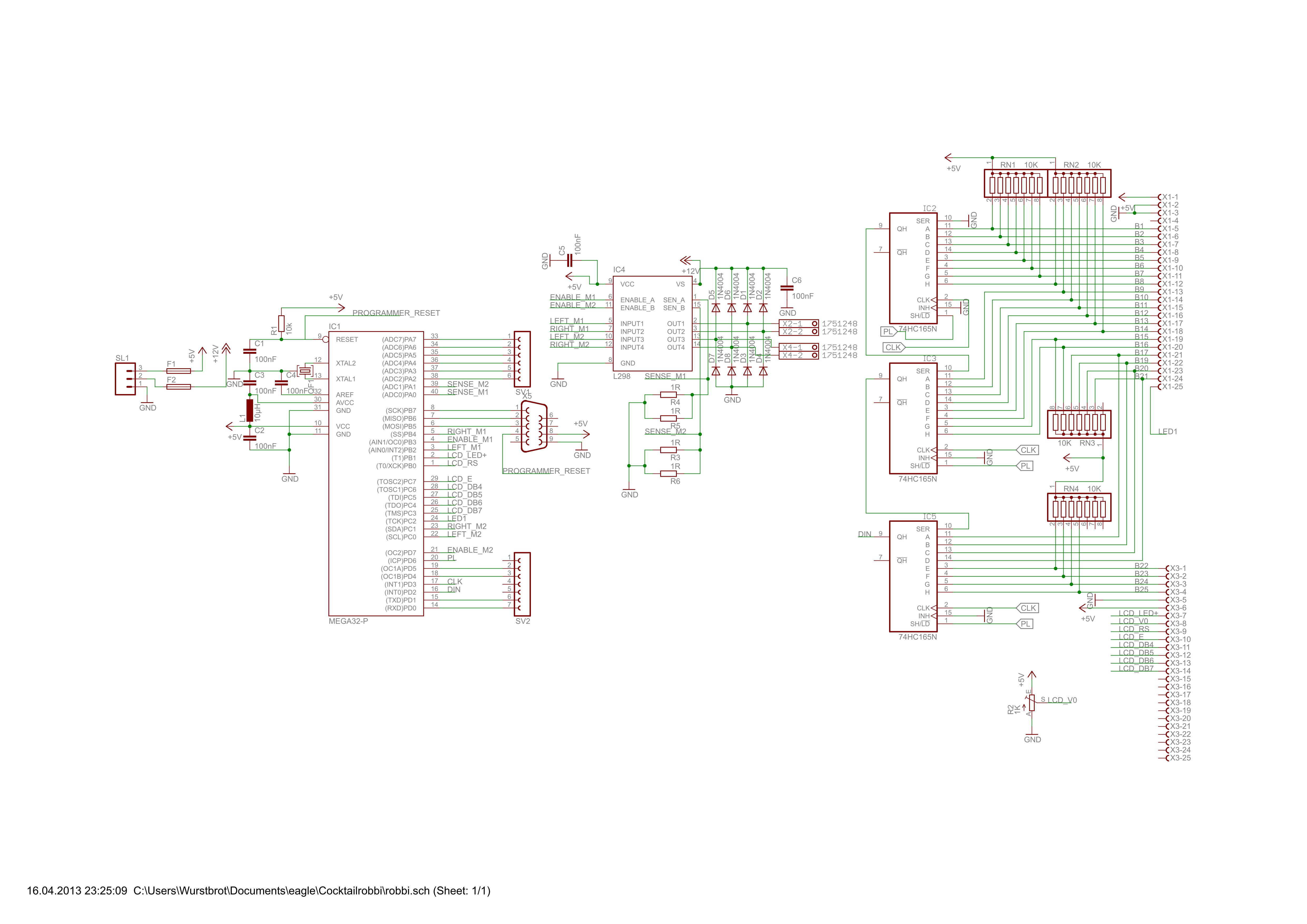 Nabend :) Ich wollte nun einmal mein erstes größeres Projekt durchführen. Programmiere sonst nur über den Arduino und wollte nun das erste mal eine "feste" platine mit Mikrocontroller einbauen. Wegen der vielen I/O habe ich mich für einen Atmega 32-16PU entschieden... Und weil er bei pollin so günstig ist ;). Jetzt habe ich nur folgendes Problem: Durch den arduino habe ich Hardwaretechnisch bisher keine Berührungspunkte mit nackten Controllern gehabt und wollte fragen ob sich jemand die Zeit nehmen würde über meinen Eagle plan zu schauen ob das so passt. Habe mich zwar durch ein paar Einträge gelesen, allerdings bin ich mir sehr unsicher was AREF, AVC und die kondensatoraußenbeschaltung angeht. Wäre super wenn da jetzt noch jemand lust zu hat :) Danke im Vorraus :)