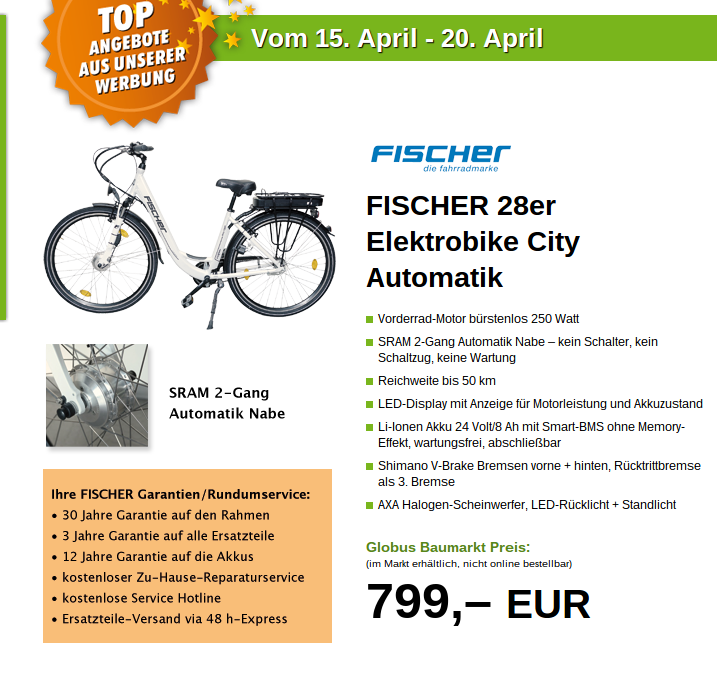 Grad bei Globus gesehen: ein 24V 8Ah- Lithium-Akku mit 12 Jahren Garantie! Und ein Fahrrad kriegt man auch noch dazu ;) Druckfehler oder neue Akku-Technologie, die bislang an mir vorbeigezogen ist?