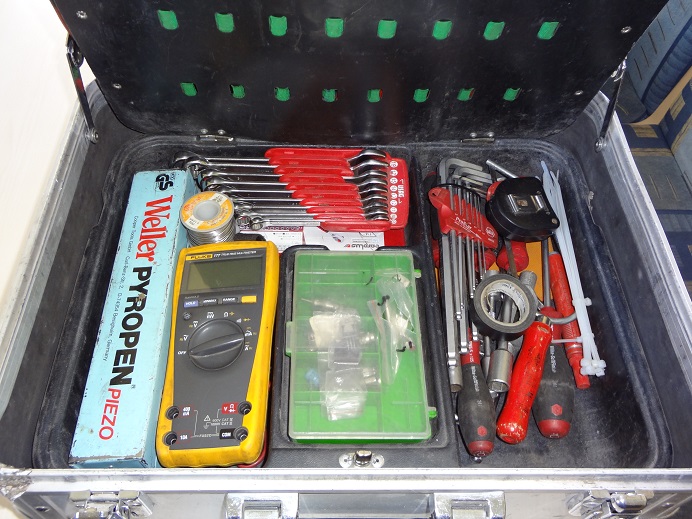 Ein Handlager sollte auch immer mit im Werkzeugkoffer sein, für die dreckigen Arbeiten oder wenn man einfach mal eine dritte/vierte Hand braucht. Und ein Heinzelmännchen der die Werkzeugkiste immer aufgeräumt hält. Ganz Wichtig: Kabelbinder und etwas Kabel, Steckklemmen, Gender-Changer, SUB-D Stecker/Buchse und 120Ohm Widerstände.