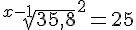 Ich würde es mal mit logarithmieren probieren. Der Exponent ist ja wohl 2/(x-1) Daraus wird 2/(x-1) = ln(35,8)/ln(25) Der Rest sollte klar sein. Schätze so 9. oder 10. Klasse, oder?