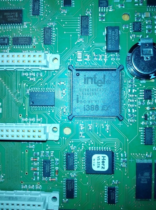 Hallo, hab eine Heizungssteuerung Biocontrol 3000 bekommen welche nicht mehr startet oder reagiert. Auf der Steuerung ist ein Monocromes Display und mehrere Tasten. Beim Einschalten bleibt das Display Schwarz. Auch sonstige Ausgänge wie Hintergrundbeleuchtung usw. bleiben aus. Es ist ein Intel QU80386EX-33 verbaut. Die Versorgung des Intel Prozessors habe ich Überprüft die ist vorhanden und liegt bei 5V. Ich kann auf der Platine auch sonst keine INdikatoren auf Überspannung Wasser usw. festellen. Sind diese Prozessoren anfällig für einen Spontanen Ausfall? Gibt es eine möglichkeit um Festzustellen ob der Prozessor beim Starten einfach nur wegen eines Fehler stehen bleibt oder ob dieser Defekt ist. Anbei ein Foto vom Prozessor.