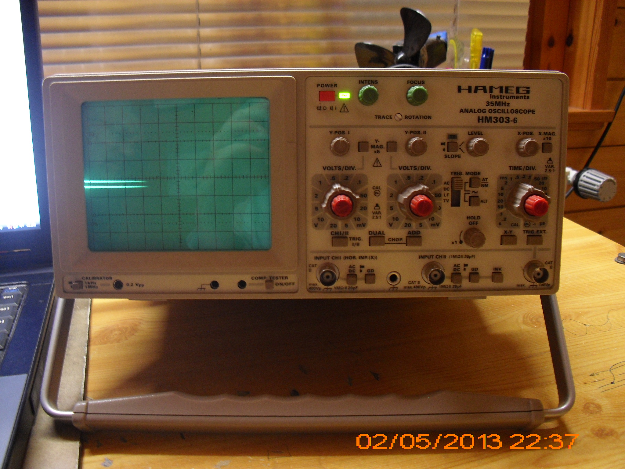Hallo Community, ich habe hier ein gebrauchtes Hameg 303-6, bei dem der Strahl in der horizontalen Ebene nicht komplett dargestellt wird. Er läuft vom linken Rand bis ungefähr 40% der Bildschirmmitte, da verschwindet er in einem weichen Übergang. Auch wenn der x-Pos-Regler anders gestellt wird, bleibt die rechte Seite ohne Anzeige. Offensichtlich ist etwas defekt, leider habe ich aber keinen Schaltplan und eine telefonische Anfrage bei Hameg ergab, dass die auch keinen haben (was mich doch sehr verwundert hat). Kann mir jemand helfen und mir einen Schaltplan schicken? Und für jeden Rat, was defekt sein könnte, wäre ich sehr dankbar. Gruß Max