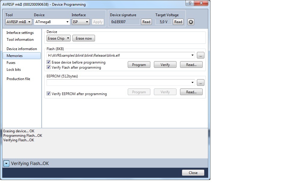 Ich benutze Atmel Studio 6.1, nach dem Verifying Flash, muss ich da kein