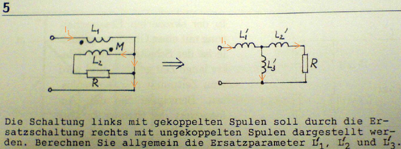 Die Strom- Spannungsbeziehung am Übertrager im linken Bild. (i1 fließt