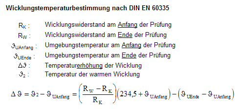 Die Isolierung von Kuperlackdraht wird in Klassen eingeteilt. Höchstzulässige Dauertemperatur in C° sind: Y: 90 A: 105 E: 120 B: 130 F: 155 H: 180 C: >180 Beliebt bei vielen Motoren sind Klasse A und F. Eine kurzzeitige Übertemperatur ist mit ansteigender Klasse von ca. 50...100K möglich (bis der Überstromschutz anspricht). Die vorgeschlagenen Methode mit Gleichstrom ist gut, der Effektivwert des Stromes mit Rechteckblöcken für gleiche Erwärmung ist ITRMS = Imax*Wurzel(T1/T). (Keine Ahnung wie „Stromspitzen“ ausehen, klingt nach Prosa oder Häkeln, nicht nach Technik). Eine Temperaturerhöhung des Drahtes läßt sich sehr leicht und genau mit seiner Widerstandsmessung ermitteln, vorausgesetzt man hat ein entsprechendes Ohmmeter, siehe Bild. Der Faktor 1.7 von Thomas ergibt eine Erhöhung um 179K. Die Formel in Excel eingegeben, und man kann einfach andere gewünschte Werte berechnen.