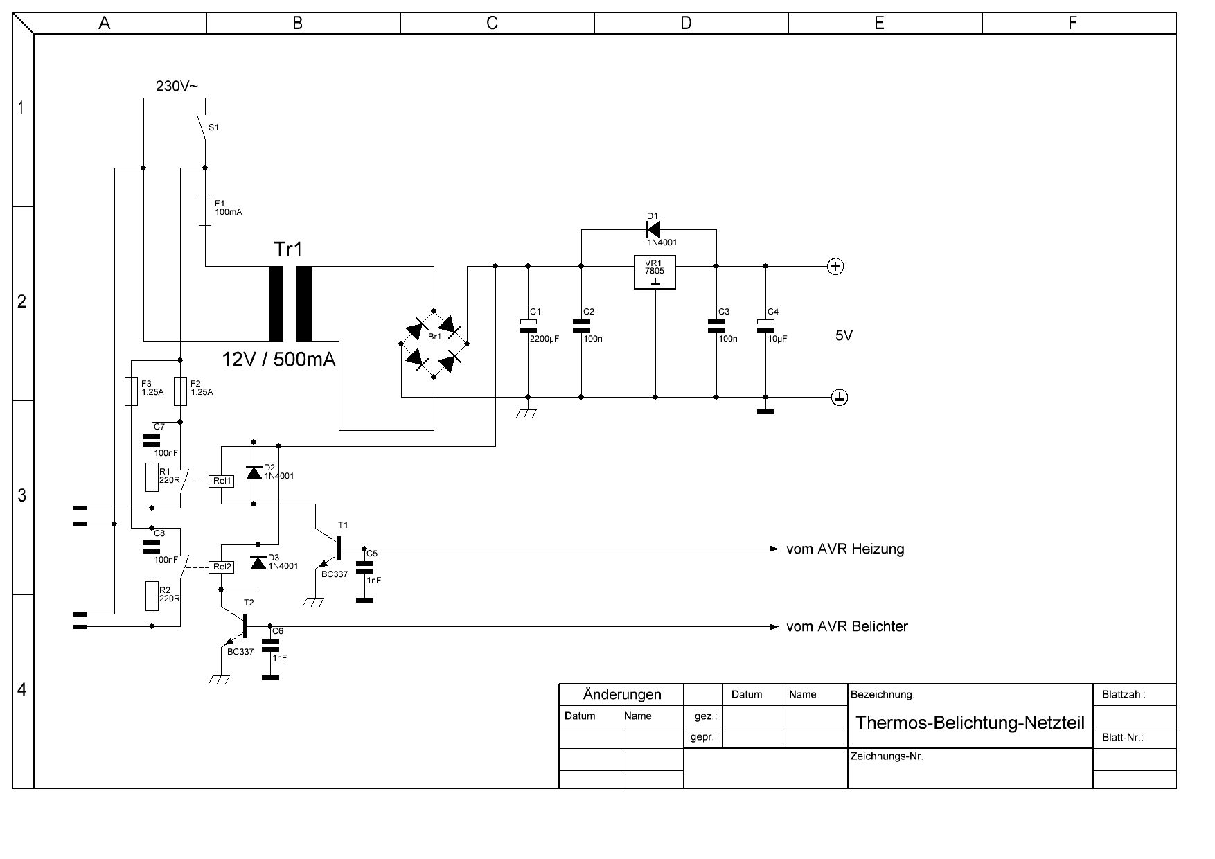 Habe mal den Schaltplan vom Netzteil überarbeitet. Ich werde nun auch den Timer für das Belichtungsgerät mit einplanen. So steht nur ein Gerät auf dem Tisch. Wäre der so ok?