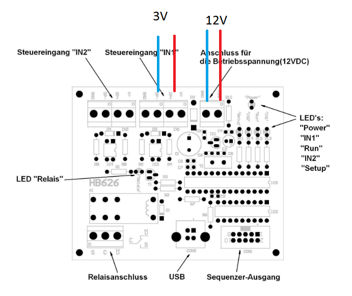 Hallo kennt sich zufällig jemand mit diesem Relais aus? http://www.h-tronic.eu/product_info.php?info=p80_multifunktions-usb-zeitrelais.html Ich bekomme es nicht hin, das das Relais schaltet. Habe wie in der Skizze auf IN1 (OP+/OP-) 3V anliegen, das Programm läuft (LED RUN leuchtet), aber das Relais schaltet nicht, es passiert nichts. Bin nicht so vertifft in eTechnik, daher frage ich hier einfach mal an. Habe es derzeit so angeschlossen, wie in der Skizze. Gruss