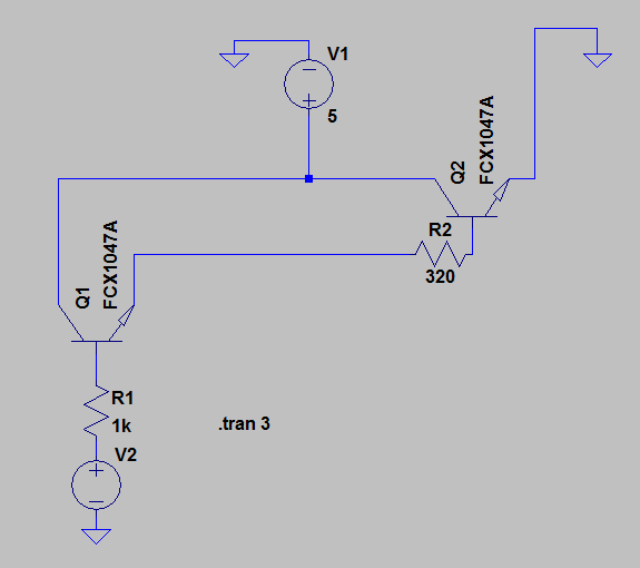 Hallo Leute, ich suche einen Transistor, mit dem ich bei einer Spannung von 5V (Basisspannung nur 3,3V) 2A oder mehr schalten kann. In der Transistorübersicht hätte ich mir schon was schönes ausgesucht, aber laut LTSpice-Simulation komm ich mit meinem Aufbau nur knapp über 1,5A. Gibt es entsprechende Bauteile, oder muss ich mit einem Transistor (3,3V Basisspannung) auf die Basis des zweiten Transistors 5V schalten? Danke für Hinweise und Tips, spady